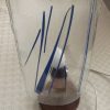 Candeeiro de pé em vitrofuzão com o pé em madeira.
